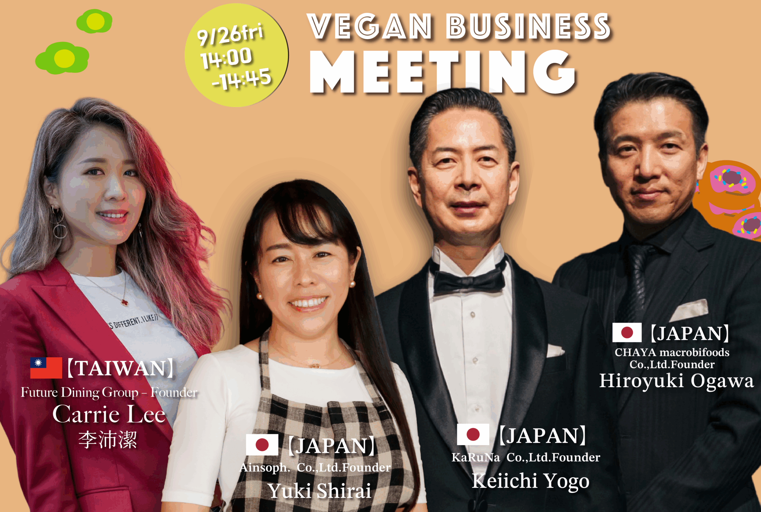 | content | 益々拡大が予想されるVEGAN市場、しかし現状の市場規模はどの程度なのでしょうか?ビジネスを行う上で市場の把握はとても大事な要素です. これまで15年以上に渡り日本のVEGAN市場を牽引してきた3人のVEGAN事業経営者(日本プラントベース市場協会 理事)達による、日本におけるVEGANマーケット・そしてVEGAN事業の経営についてのお話をしていただきます。 ゲストには、台湾で5店舗のVEGANレストランを経営するFuture Dining GroupオーナーのCarrie Lee / 李沛潔を招いて、台湾のVEGAN市場・経営のお話を伺います。 |